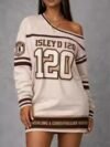 This fitted jacket and mini dress skirt set features premium stretch fabric, snap-button front detailing, ribbed cuffs, and embroidered ISLEY D 120 branding.