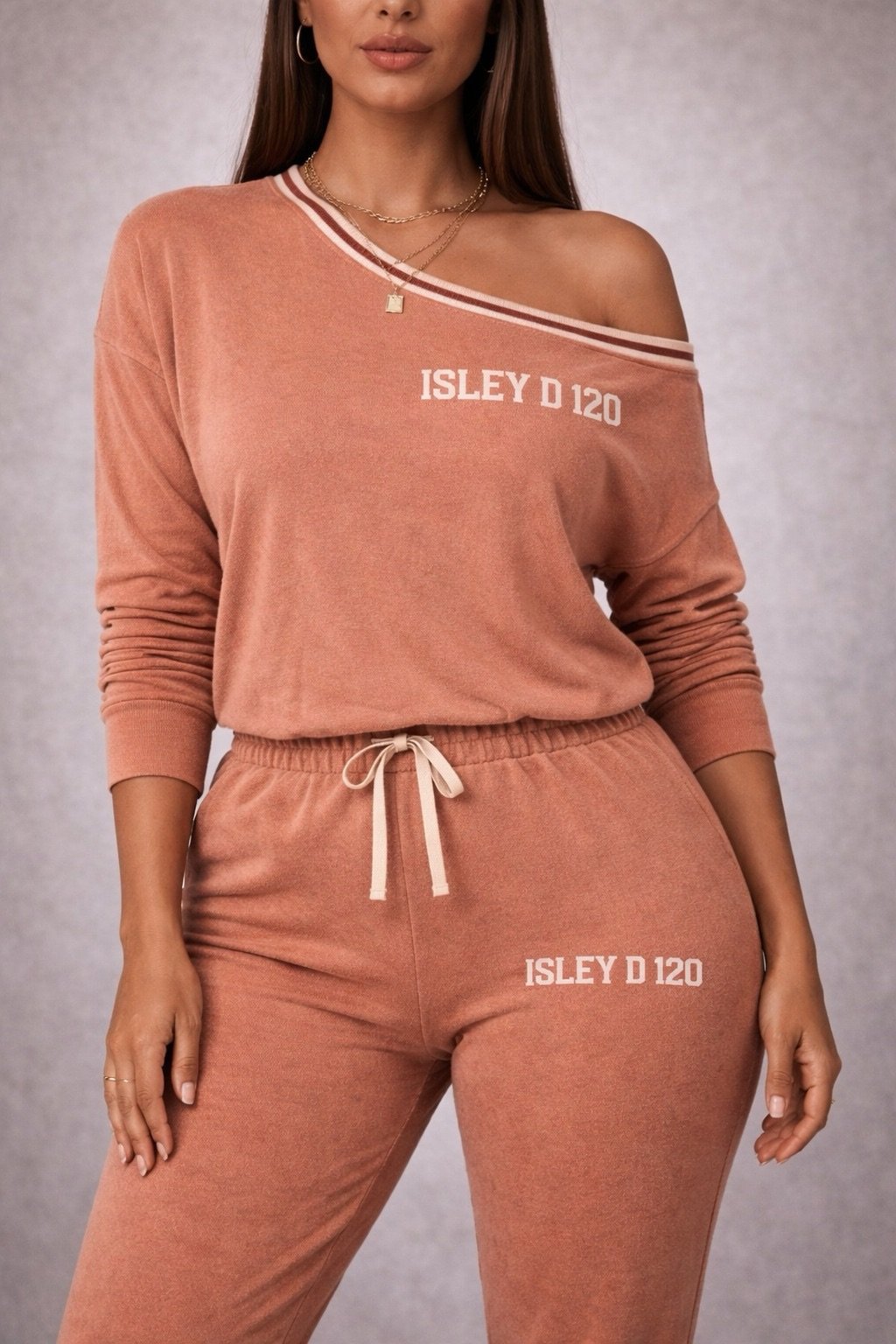 A signature ISLEY D 120 silhouette designed to merge modern athletic aesthetics with elevated feminine tailoring. The Earth League Dress features an off-shoulder neckline, sculpted fit, athletic stripe sleeve detailing, and bold front ISLEY D 120 branding with oversized 120 numbering.